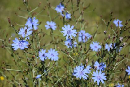 La achicoria tiene propiedades culinarias y medicinales, pero si hay algo que llama la atención de esta plantas son sus flores de color azul intenso, con los pétalos acabados en cinco finas puntas.