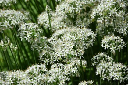 Allium tuberosum es una planta culinaria con valor ornamental gracias a las umbelas de flores blancas que produce al final del verano y principios del otoño
