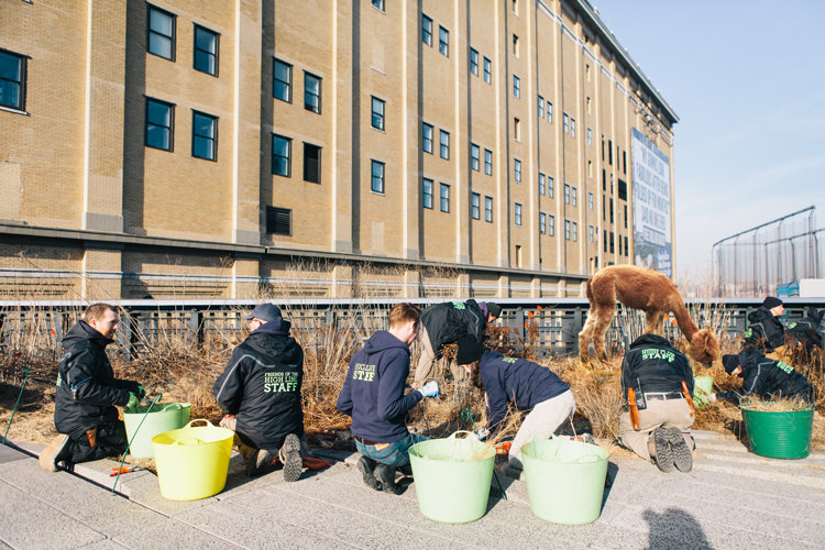 En la High Line de Nueva York, 4 alpacas ayudan a los jardineros voluntarios en la temporada del «spring cutback»