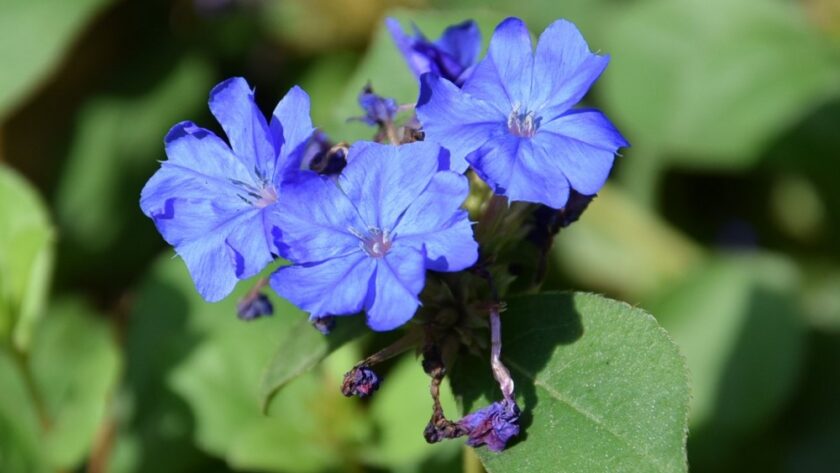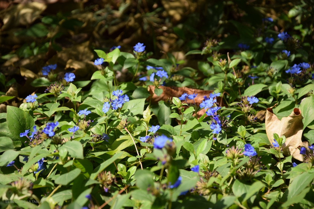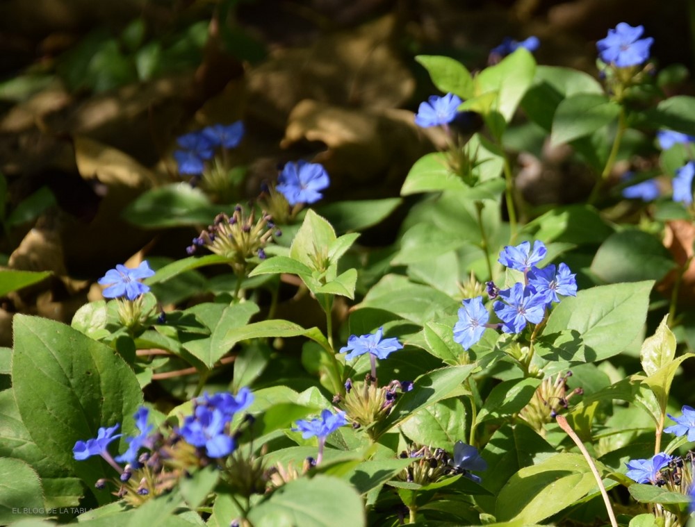 Solemos relacionar el otoño con el espectáculo que ofrecen los árboles y arbustos caducifolios, cuando sus hojas adquieren esas mágicas tonalidades de amarillo y rojo. Pero existe un buen número de plantas herbáceas perennes (vivaces) que en esta estación también tienen mucho que ofrecer en el jardín gracias a su floración tardía. En este caso, Ceratostigma plumbaginoides no solo crea vistosas alfombras con sus racimos de pequeñas flores de color azul intenso, sino que, a medida que avanza el otoño, su hojas se tornan rojas o moradas, creando un atractivo contraste.