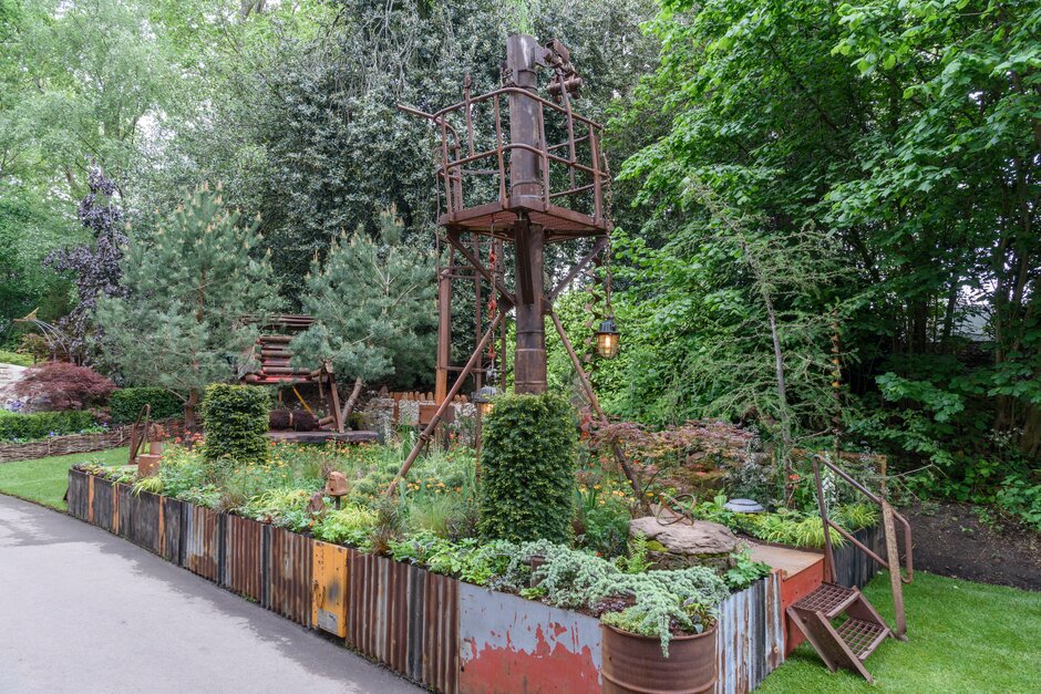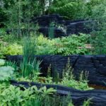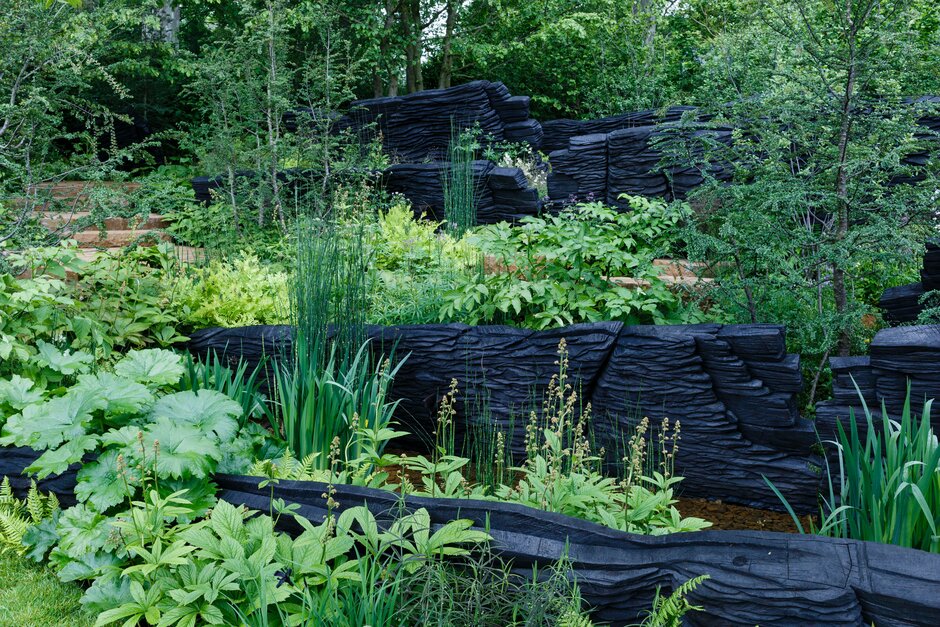 El diseñador siete veces ganador de la medalla de oro, Andy Sturgeon, ha vuelto a Chelsea con un jardín (M&G Garden) que representa el poder de la naturaleza para regenerarse. Un paisaje colonizado por árboles jóvenes, helechos y flores, intercalados con plataformas de piedra y enormes esculturas de madera quemada que representan formaciones rocosas naturales.