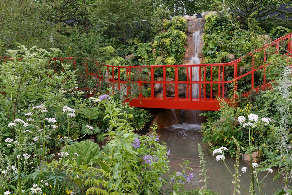 Jonathan Snow, que el año pasado se inspiró en una granja de Sudáfrica, este año encontró la inspiración en las selvas tropicales templadas de América del Sur. Con su jardín The Trailfinders ‘Undiscovered Latin America’ lleva al centro de Londres exuberantes plantaciones y espectaculares cascadas. En su esquema de plantación aparecen conocidas especies nativas de Chile, como Fuchsia, Gunnera, Alstroemeria o Araucaria araucana (Pehuén).