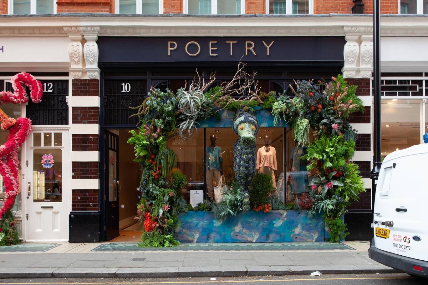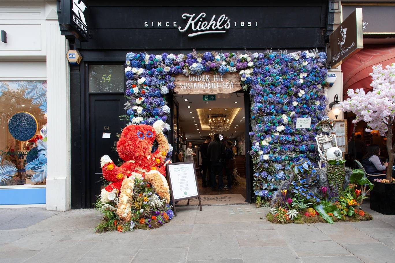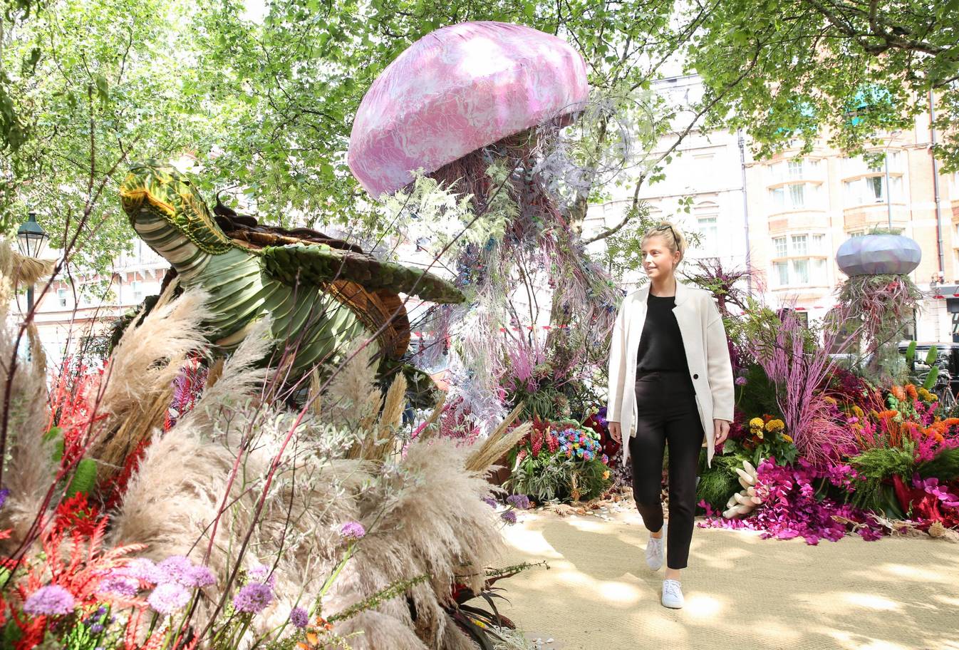 En Pavilion Road hay una instalación floral gigante de 4 metros de altura que representa una orca y se ha creado a base de hojas tropicales, delfinios, hortensias y gypsophila espumosa. Mientras tanto, en la Plaza del Duque de York, los floristas ‘Maison de Fleurs’ han creado una tortuga gigante compuesta de una mezcla de especies vegetales, que incluyen diferentes plantas suculentas, musgo y flores de colores brillantes.