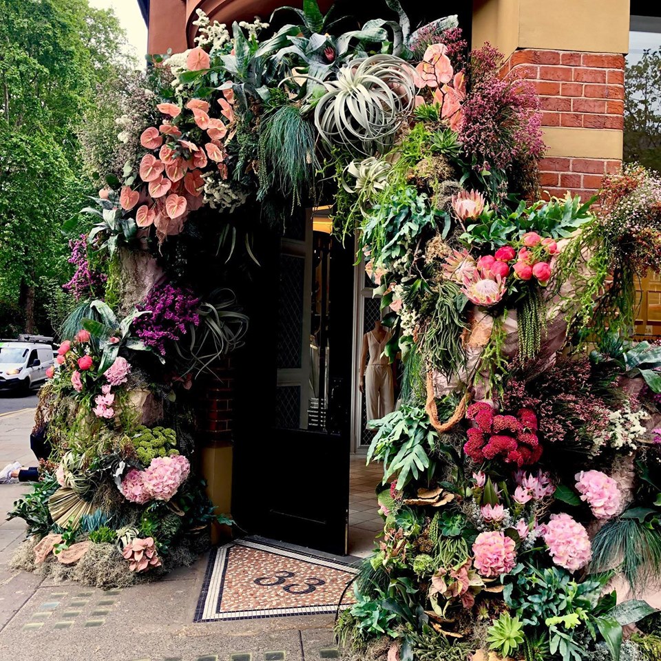 En Chelsea in Bloom cada año se crean instalaciones y diseños a base de flores frescas que decoran entradas y escaparates, con el propósito de llamar la atención y aprovechar la afluencia del público que acude estos días al prestigioso festival de flores y jardines en ese mismo barrio londinense (Chelsea Flower Show).