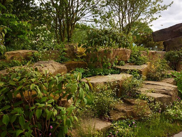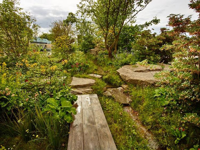 Para dar un extra de autenticidad, las plantas, tierra vegetal y rocas (inmensas) serían trasladadas desde Chatsworth hasta Chelsea. ¿Qué os parece? Pues dicho y hecho. La tarea has sido complicada, con algún que otro contratiempo y cambio de última hora, pero el resultado está disponible, hoy solo para la prensa y para el resto de los humanos a partir de mañana. Será un placer ver ese jardín, sin duda. Ya veremos de qué modo lo conseguimos.