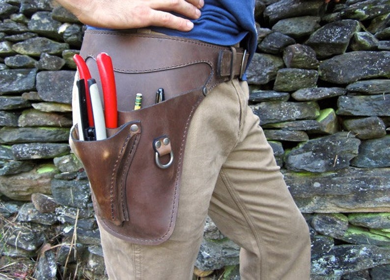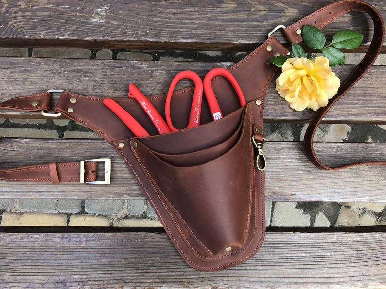 Cinturón de herramientas para agricultores y floristas de cuero curtido. Hecho a mano.