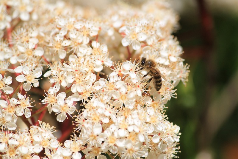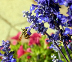 Del azul, doy fe, porque las espigas florales azules de la Salvia farinacea (Salvia azul) que tengo en el jardín, tienen durante todo el día un no parar de visitas de abejas; y a comienzos de la primavera, las inflorescencias de color blanco amarillento del Viburnum odoratissimum están literalmente abarrotadas de abejas. Toda una orquesta… Son solo algunas de las muchas plantas que atraen polinizadores.