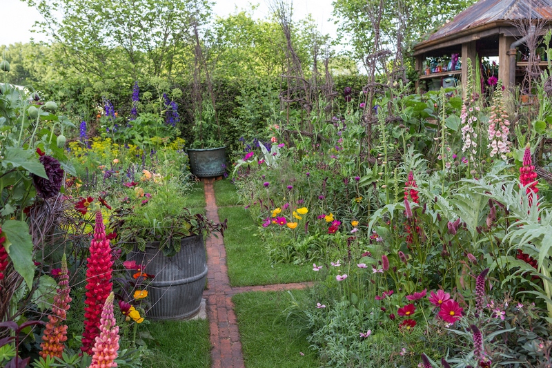 Un jardín diseñado para cosechar flores, un mosaico exquisito de color que puede disfrutarse, no solo en el propio jardín, sino también dentro de casa. Eso es lo que se propuso hacer Sarah Raven y es lo que construyó en Chelsea Flower Show 2017, con la colaboración de Anneka Rice, pintora y presentadora de la BBC Radio2; y Tricia Guild, diseñadora de interiores, que aportó su experiencia en el tratamiento del color.