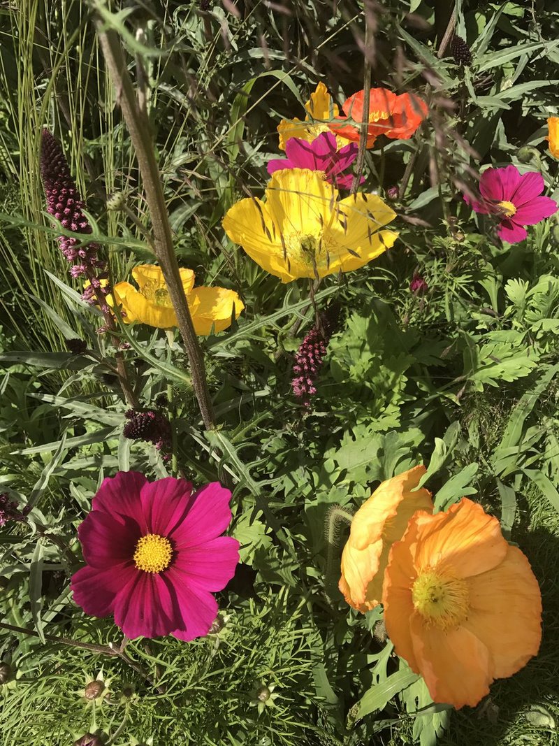 Entre las plantas anuales y bianuales, se han incorporado amapolas de Islandia (Papaver nudicaule) de la selección ‘Champagne Bubbles’, con flores más grandes y que, además, son más duraderas una vez que están en el florero. Los guisantes de olor (Lathyrus odoratus) aportan una rica y brillante mezcla de colores, gracias a cultivares como ‘Prince Edward of York’, ‘Matucana’, ‘Barry Dare’, ‘Lord Nelson’, ‘Almost Black’ y ‘Midnight’.
