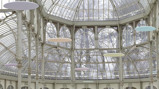 Quiere que su presencia cobre sentido, que viva ese espacio e imagine columnas en el aire a través de una serie de círculos de colores puros distribuidos por el suelo y suspendidos en la cubierta del palacio. Esas columnas imaginarias pretenden ser árboles, del mismo modo que las columnas fueron representación esquemática del árbol en el arte de las primeras civilizaciones. Son, en definitiva, una prolongación de los árboles del parque que rodean al Palacio de Cristal y cualquier elemento que evoque la naturaleza en la forma que sea, siempre es bienvenido porque ayuda a acercarnos a ella.