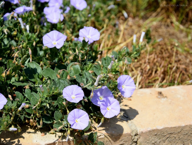 Estoy muy acostumbrada a ver por aquí y por allá algunas de las especies silvestres de corregüela (Convolvulus spp) de esta zona salpicando (y enredando) el campo con sus flores durante la primavera, el verano e incluso el otoño. Pero hoy mis ojos se van a Italia, porque el delicado color azul lavanda de las flores en forma de pequeñas campanas de Convolvulus sabatius, otra planta mediterránea tolerante a la sequía que me fascina.