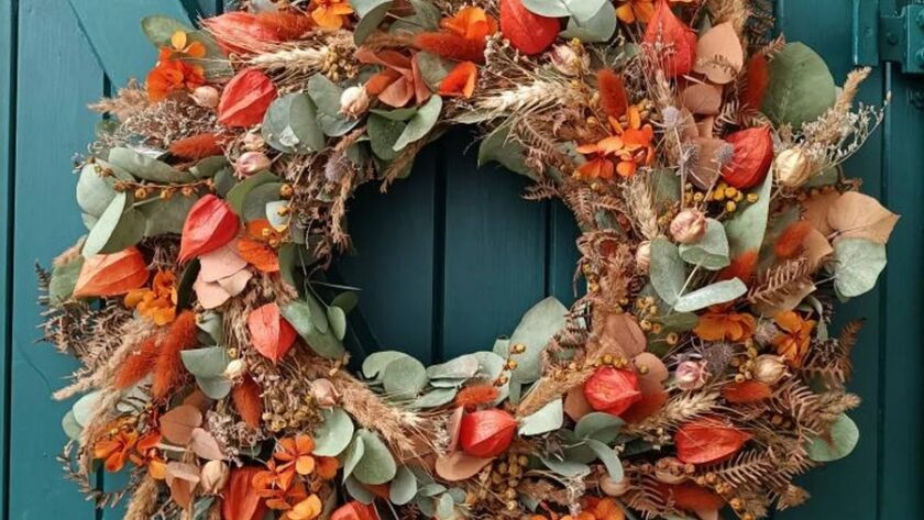 En otoño, durante el Adviento o en Navidad, podemos dar una bienvenida festiva a nuestros amigos y familiares, colocando una corona hecha con flores secas y otros materiales naturales en la puerta principal, o llenar de calidez el interior del hogar colgándola en una pared.