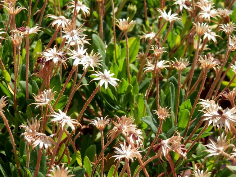 Como bailarinas las flores de la Rudbeckia. Las más divertidas, las de la Gaillardia. Las más alegres, las estrellas del Osteospermum. Con mucho estilo, las inflorescencias de la Salvia farinacea. Juguetonas, las del Argyranthemum frutescens. Recogidas, como las de la Salvia officinalis. Las clásicas, las de la Rosa, por supuesto. Lloronas, las del Cordyline australis. Sin agacharse, la del Allium schoenoprasum. Con movimiento, las del Cosmos bippinatus. Muy pegajosas las de la Petunia. Todo un disfrute, las de la Hydrangeay… que voy a decir, las más bonitas y fragantes, las de la Gardenia jasminoides… digo yo.
