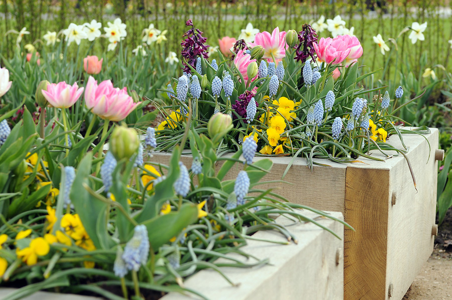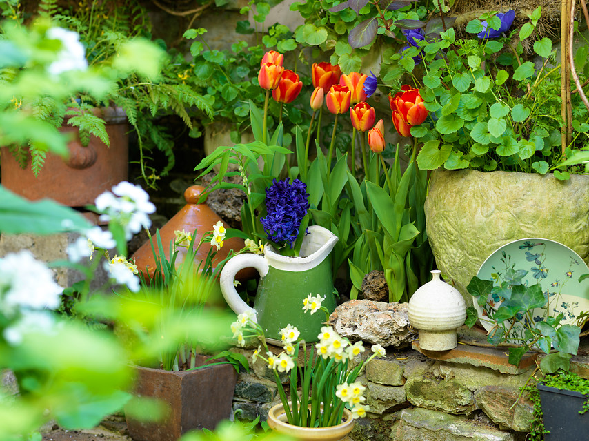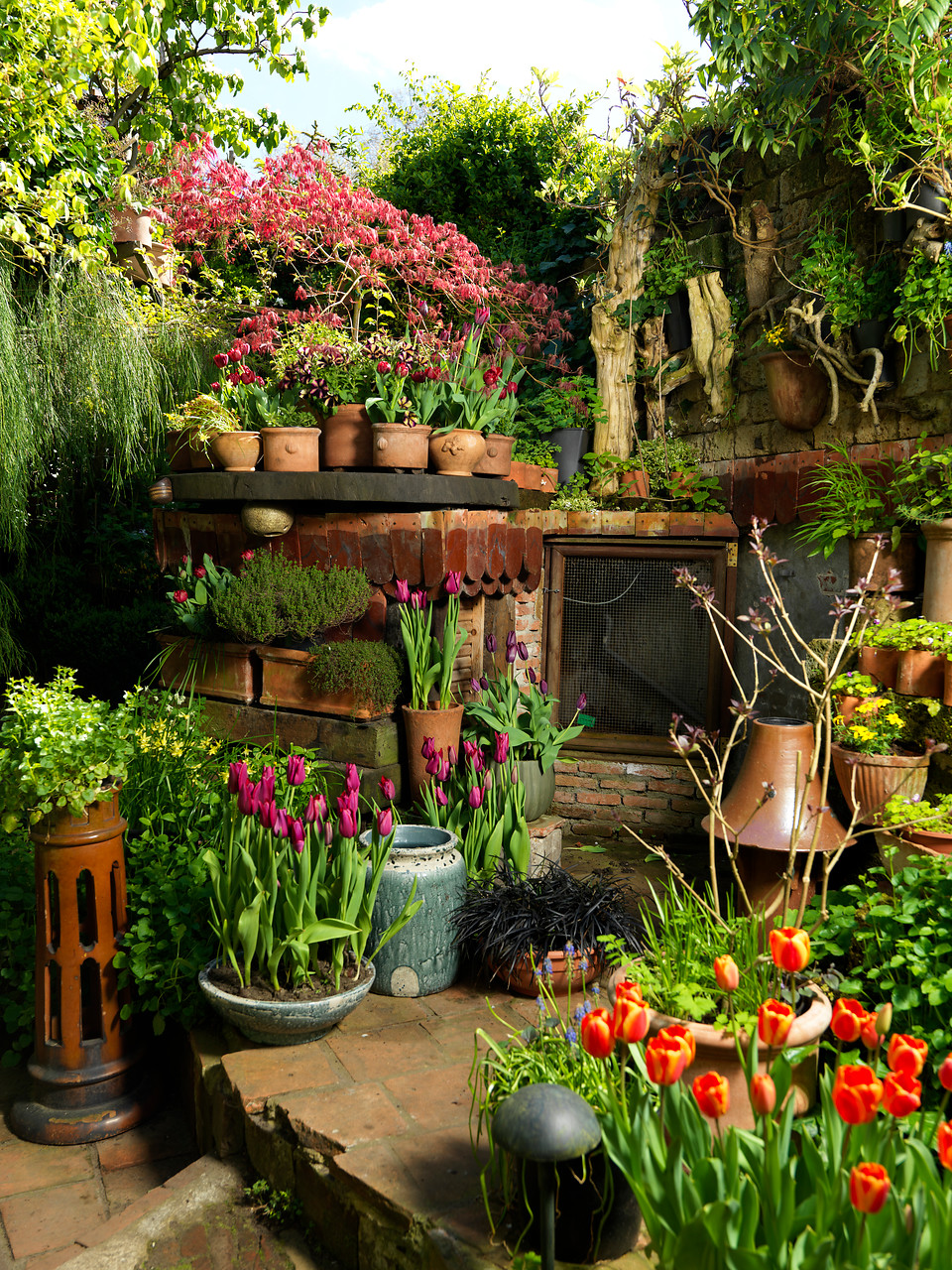 Todas esas ventajas, sin embargo, tienen un precio, porque no se pueden cultivar los bulbos de flor de primavera en maceta de la misma forma que lo hacemos en el suelo. Comparado con el cultivo en el jardín, los contenedores, incluso los más grandes, no dejan de ser mundos minúsculos, estrechos y artificiales.