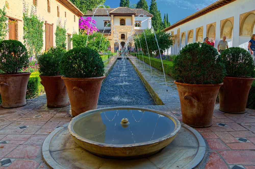 También conocido como el “Patio de la Ría”, el Patio de Acequia es el primero y más emblemático de los patios del Generalife en la Alhambra de Granada y responde al esquema árabe de patio cuatripartito de origen persa y de gran tradición en Andalucía.