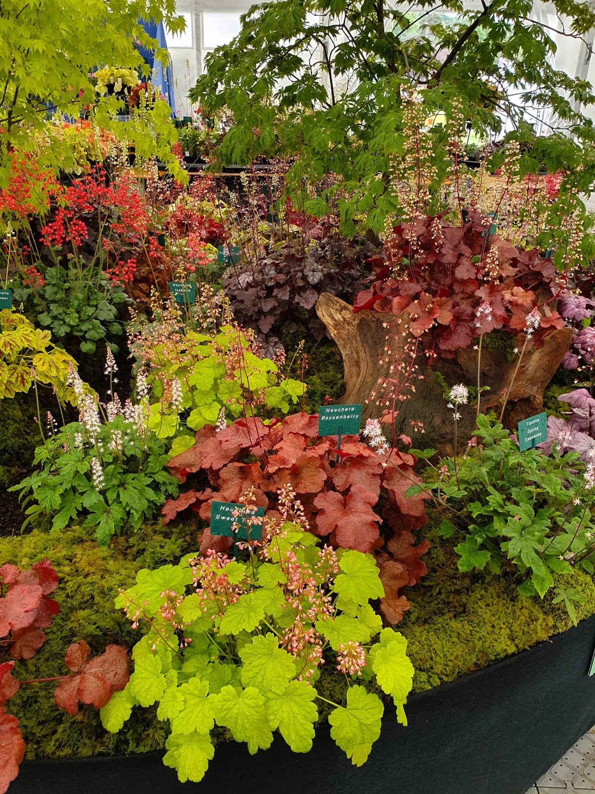 Stand de Heuchera, heucherella y Tiarella en Floral Marquee de Chatsworth Flower Show 2019 •• Plantagogo