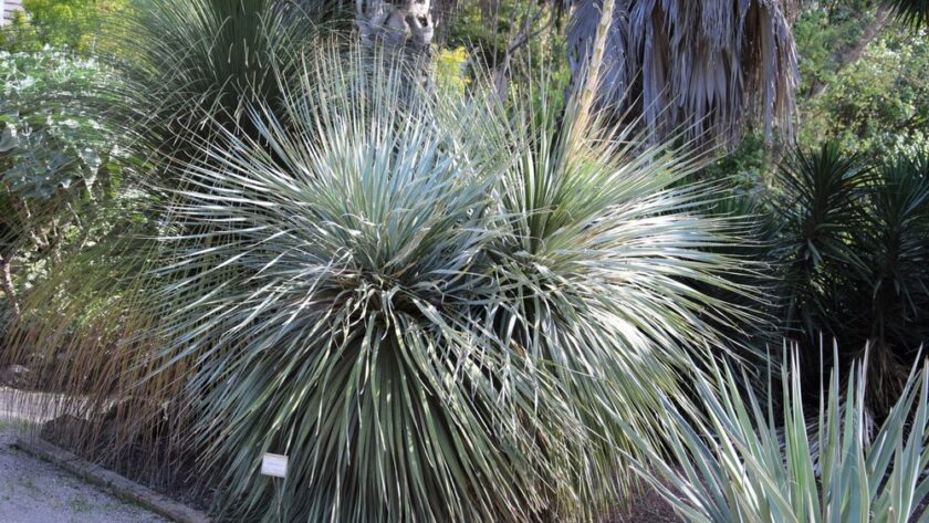 En Riverbanks Botanical Gardens, en Carolina de Sur, se pueden ver crecer juntos ejemplares de Yucca rostrata, palmeras pequeñas del género Brahea y Dasylirion.