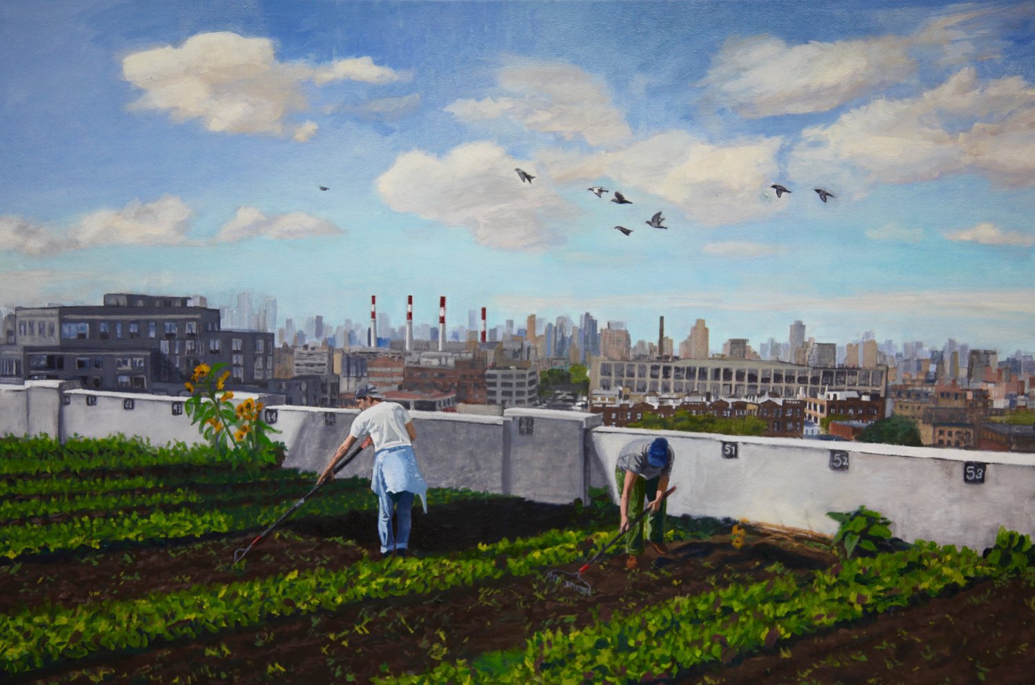 La muestra se inauguró el 27 de abril en una galería de Nueva York (Ceres Gallery) y permanecerá hasta el 22 de mayo de 2021. No están los tiempos para viajar, así que tendremos que conformarnos con conocer algunas de sus obras a través de la pantalla y, de paso, acercarnos de algún modo al alma de esas granjas en azoteas cada vez más urgentes, donde los ciudadanos toman contacto con la tierra y construyen un entorno menos hostil.