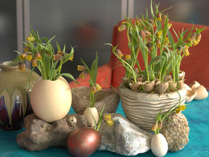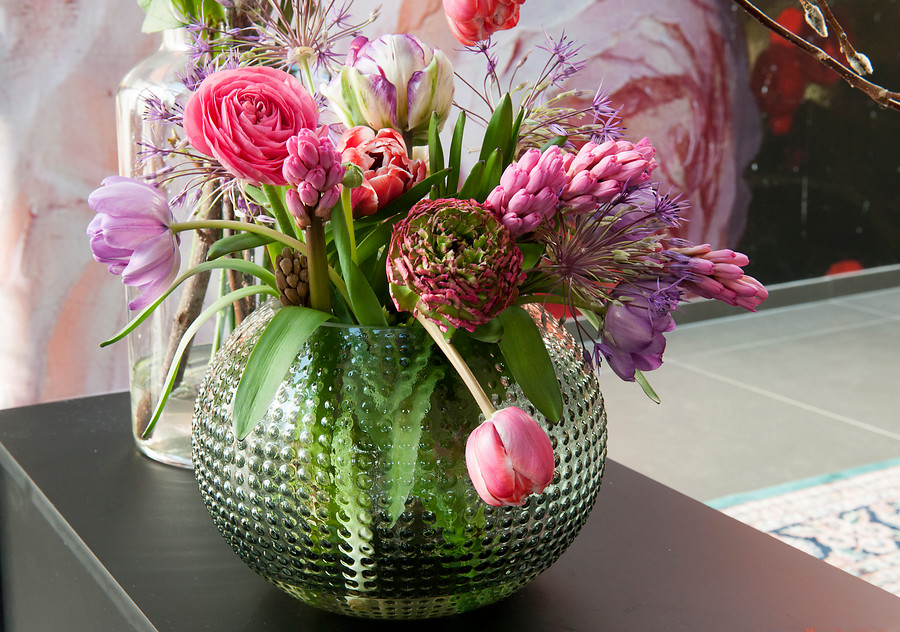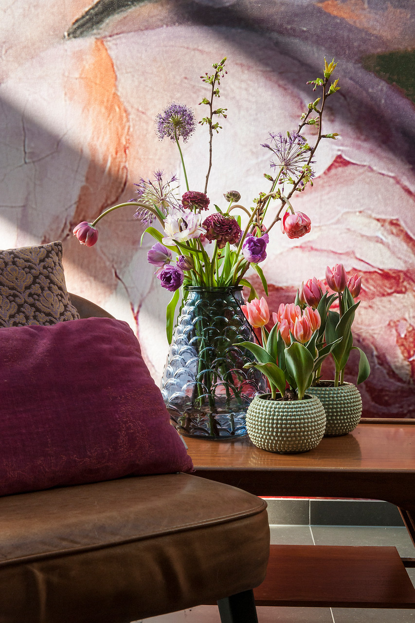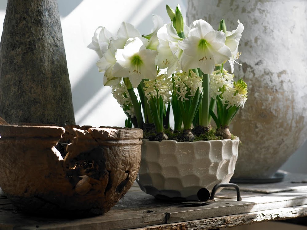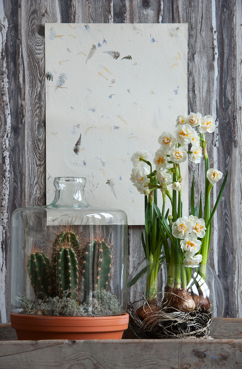 Se pueden crear verdaderos bodegones con flores de tulipanes (Tulipa), narcisos (Narcissus), muscari (Muscari), amarilis (Hippeastrum), las alegres campanillas de primavera (Galanthus) e, incluso, alguna que otra delicada Fritillaria. Pueden ser bulbos forzados disponibles para el interior del hogar o flores de bulbo cortadas. En cualquier caso, el recipiente donde se vayan a exponer marcará la diferencia.