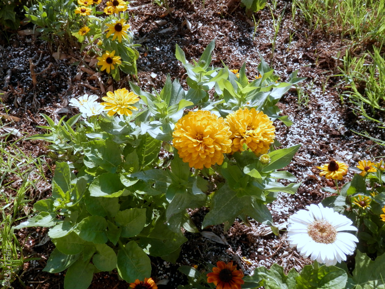En verano las flores rojas fueron las protagonistas ahora las amarillas y tímidamente las de color crema. Están siempre ahí, no fallan, desde el verano hasta otoño. A pleno sol, todo el día, y dejan claro que les gusta. Siempre hay flores de zinnia alegrando el jardín. Zinnia elegans, está en racha.