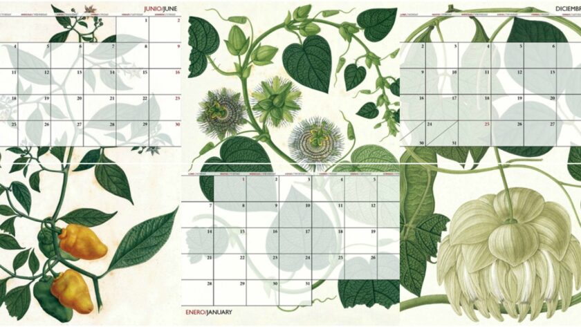 Entre los dibujos botánicos seleccionados vamos a encontrar distintos ejemplares de Passiflora, Serjania sp., Clusia minor o Cayaponia pedata. El calendario se puede adquirir directamente en la tienda del Real Jardín Botánico o solicitar que lo envíen por correo (calendario@rjb.csic.es). Más información aquí.