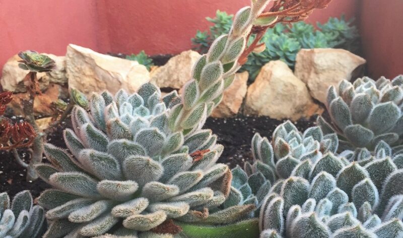 Ya nos hemos situado en el género, pero ahora viene lo difícil, identificar especies y/o híbridos. Hoy traigo un ejemplo que a mí me confundió, puesto que la identifiqué erróneamente como Echeveria setosa, pero no, había algo que me decía que no era exactamente igual, y así fue. Se trata de una Echeveria ‘Bombycina’ Gossot, un híbrido de Echeveria setosa Rose y Purpus x Echeveria pulvinata Rose. Vamos a verla.
