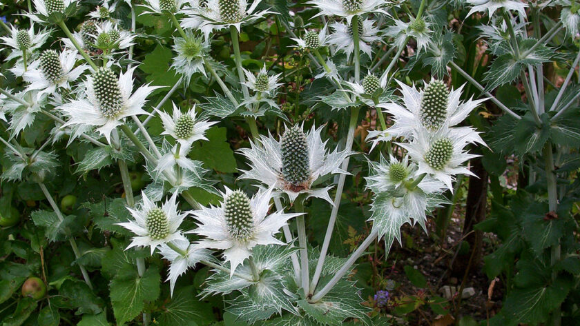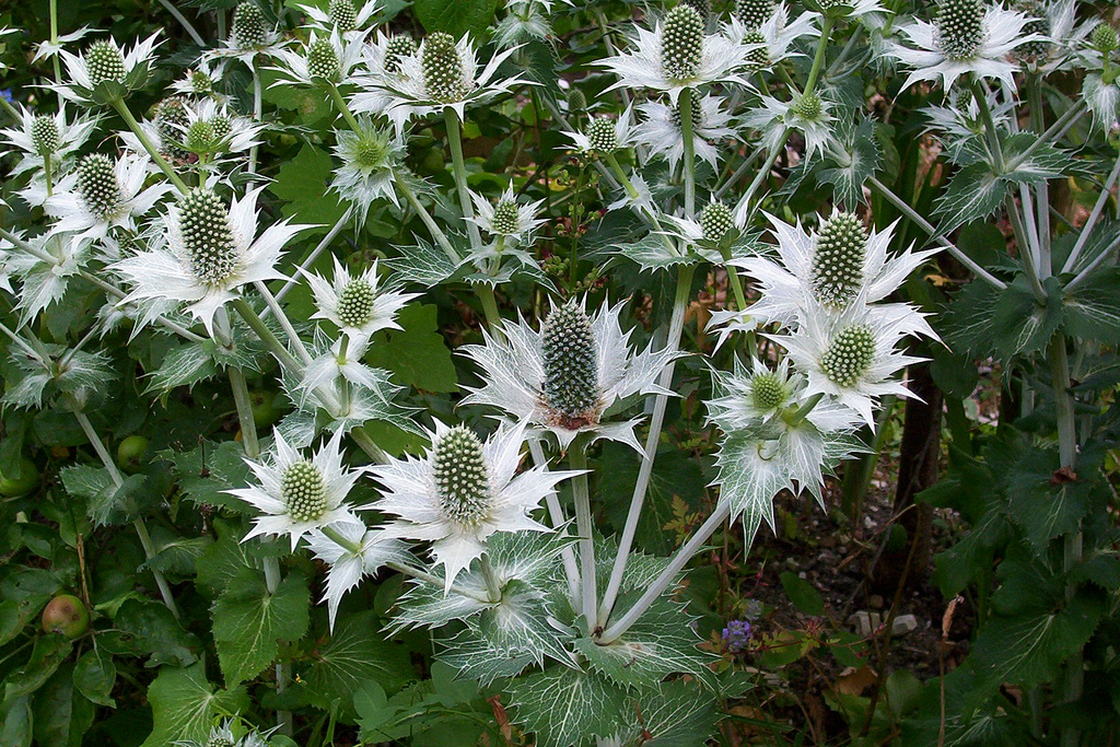 La planta más famosa asociada a Ellen Willmottes un cardo, Eryngium giganteum, también llamado ‘Miss Willmott’s Ghost’ porque ella solía echar semillas de esta planta que tanto admiraba cuando visitaba los jardines de los amigos, sin que estos se dieran cuenta de ello hasta que ese cardo, originario del Cáucaso e Irán, aparecía un tiempo después en su jardín. Eso es lo que se dice. Aunque, para ser justos, Willmott es recordada principalmente por su talento hortícola y el gran legado de plantas que cultivó en su propio jardín y que incluían, cómo no, ese bello cardo.