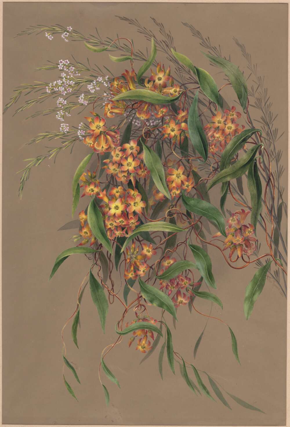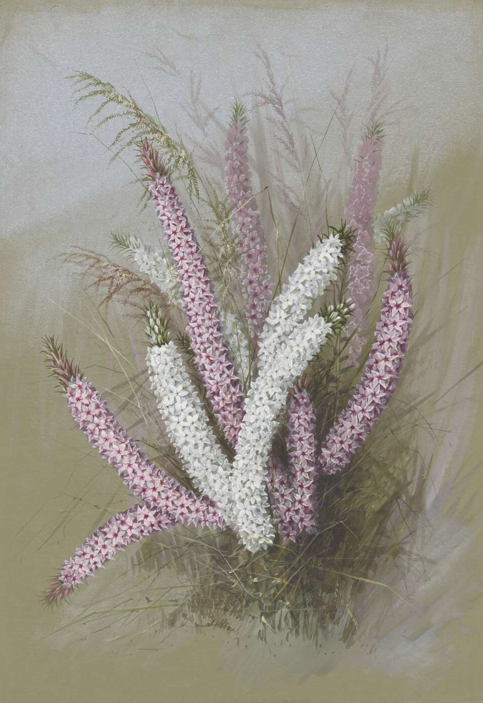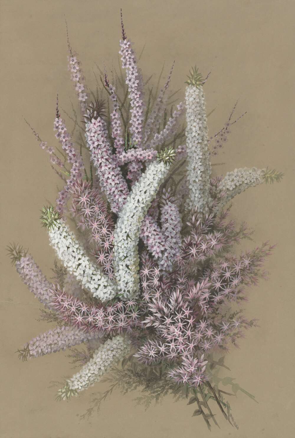 | Pandorea pandorana , Epacris purpurascens, ca. 1885 Ellis Rowan |
