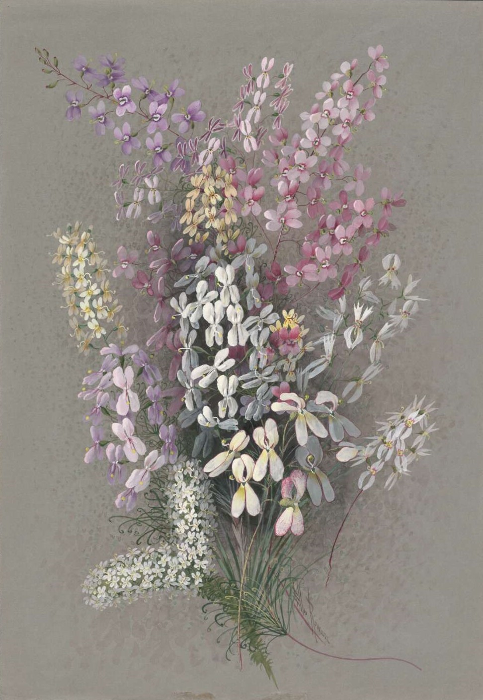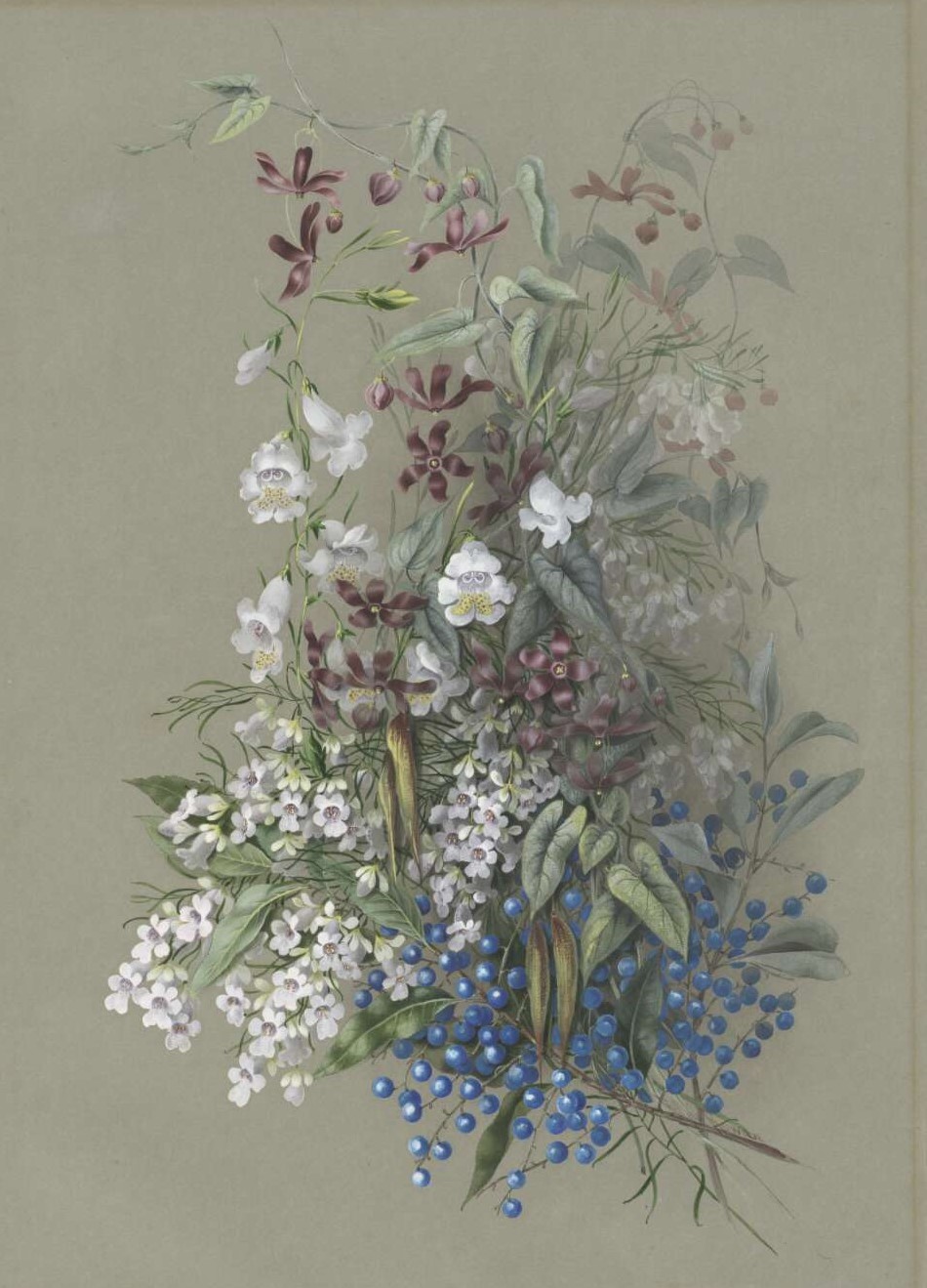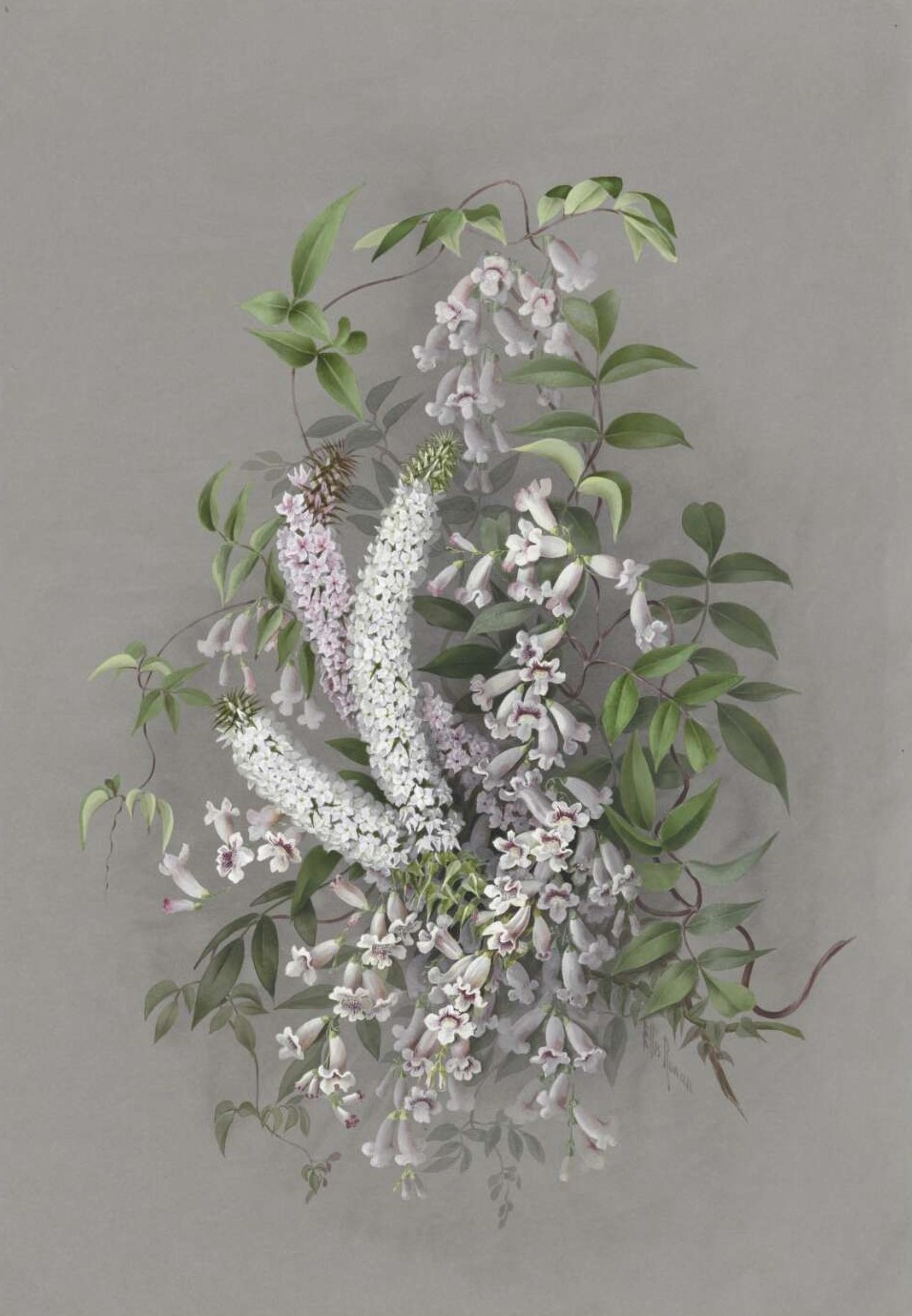 | Pandorea pandorana , Epacris purpurascens, ca. 1885 Ellis Rowan |