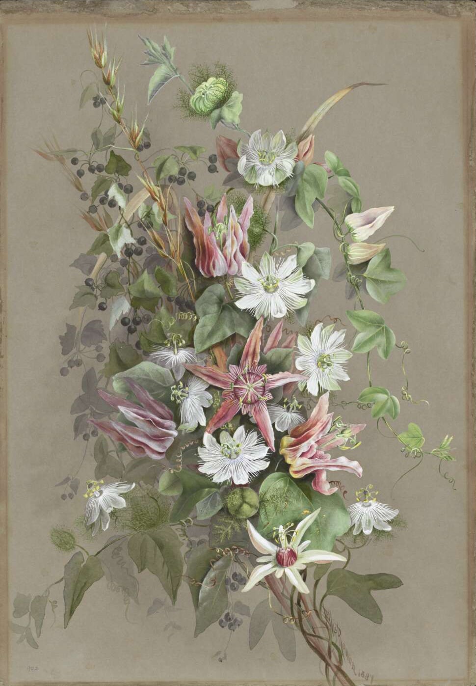 | Passiflora aurantia, Passiflora foetida, Cayratia clematidea. Queensland, 1887 | Ellis Rowan |