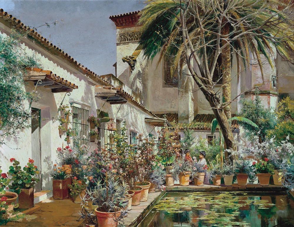 No he querido dejar escapar tampoco las macetas que aparecen en el cuadro Patio triste (Granada) pintado por Joaquín González Ibaseta y que se conserva en el Museo del Prado. Una pintura evocadora de un maravilloso patio que poco tiene de triste, la verdad.