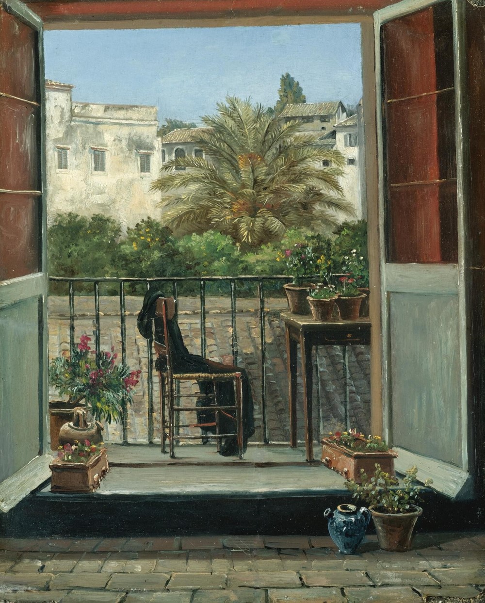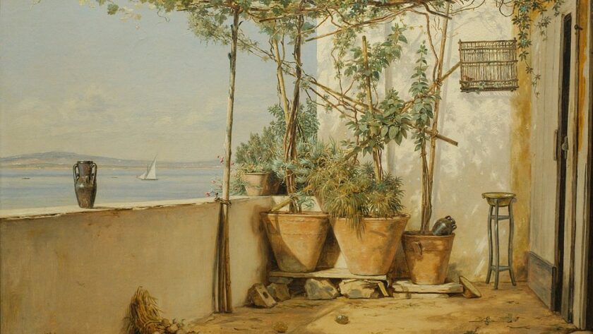 También de Martinus Rørbye he seleccionado un cuadro (en la portada) donde las macetas de barro sí son protagonistas casi absolutas, En loggia fra Procida, una pintura donde el artista representa una terraza en la Isla de Prócida, en el golfo de Nápoles.