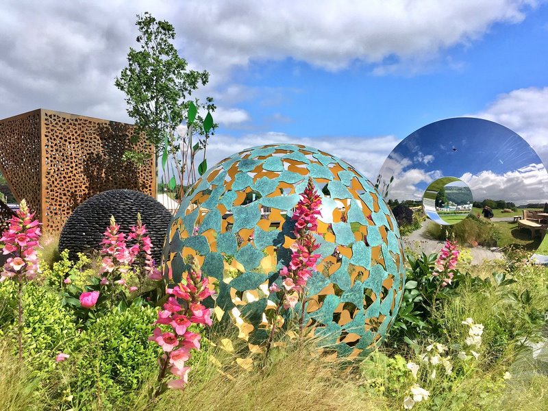 Obras realizadas en acero inoxidable pulido y que permiten crear ilusiones ópticas, o piezas de artesanía confeccionadas con materiales locales. Un poco de todo y todo en el jardín. Son algunas de las esculturas que han podido verse estos días en el ya clausurado festival de plantas y jardines Chatsworth Flower Show.