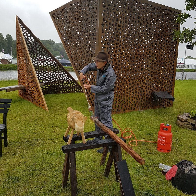 El paisaje en Chatsworth es todo un privilegio y constituye el escenario perfecto para que las esculturas emerjan y destaquen. Allí, durante la celebración del festival, se han exhibido algunos de los trabajos de David Harber, en esta ocasión obras realizadas con acero inoxidable pulido. Pero hubo más artistas, claro, como Matt Maddocks, John O’Connor o James Parker; y no faltaron piezas realizadas con materiales locales, como esculturas a base de piedra seca, tejido de mimbre, cestería, torneado, etc.