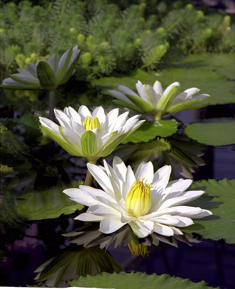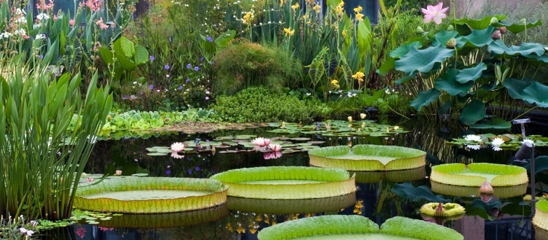 La colección está formada por 100 tipos de plantas acuáticas, que florecerán de día y de noche. Nenúfares tropicales diurnos y nocturnos de indiscutible belleza. Entre ellos, destacan un híbrido obtenido del cruce entre Victoria amazonica y Victoria cruziana en Longwood Gardens: Victoria ‘Longwood Hybrid’; el loto de las Indias Orientales (Nelumbo nucifera), un nenúfar híbrido también obtenido en Longwood (Nymphaea ‘Antares’), el papiro (Cyperus papyrus), cannas híbridas de Longwood y otros nenúfares de floración diurna y nocturna.