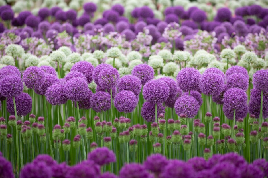Exhibición de Allium en el stand de WS Warmenhoven • RHS/ Suzanne Plunkett