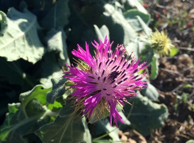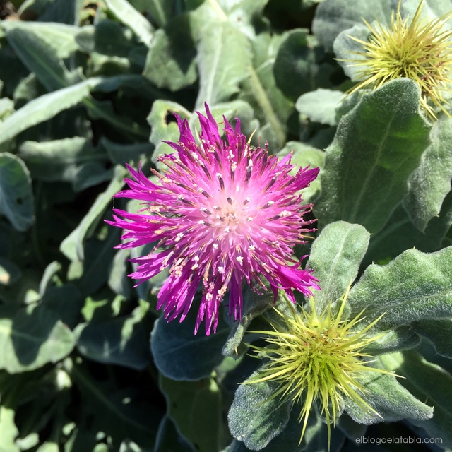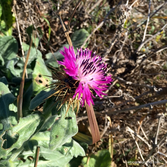 Las imágenes que comparto pertenecen a Centaurea seridis L. subsp. maritima (Dufour), con capítulos gruesos y muy espinosos; y que se hibrida con frecuencia con la Centaurea aspera (florece entre febrero y noviembre) dando lugar a una amplia gama de intermedios, algunos de los cuales posiblemente ha sido confundido con especies próximas como Centaurea sonchifolia y Centaurea sphaerocephala, a veces citadas en la Devesa.