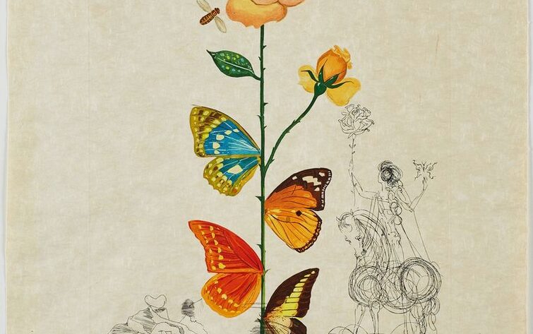 En la década de 1960, Dalí comenzó a incorporar elementos de collage como grabados botánicos y de mariposas en sus obras en papel, y con el tiempo sus nuevos trabajos en papel fueron convertidos en impresiones litográficas por artesanos.