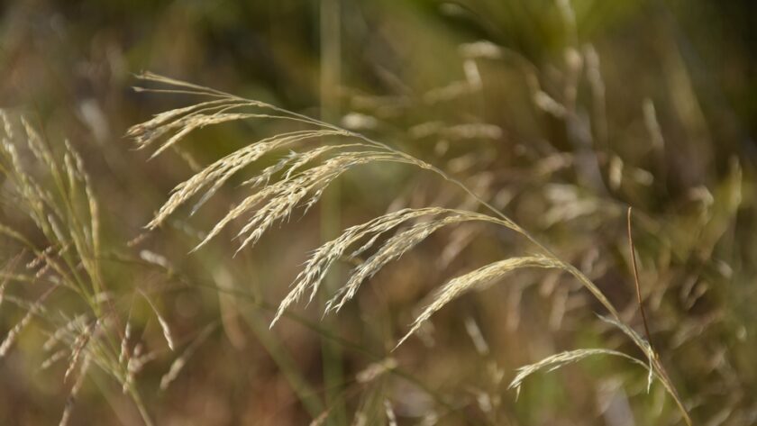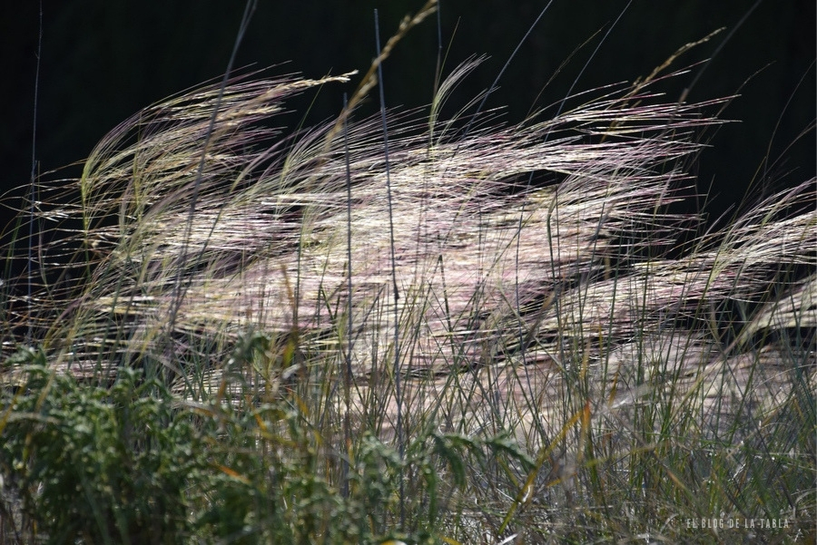 Parece ser que su nombre científico ahora es Achnatherum parviflorum, pero seguiré llamando a esta delicada gramínea silvestre Stipa parviflora, que es más sencillo (tampoco me gusta mucho uno de sus nombres vernáculos: pelos de bruja).