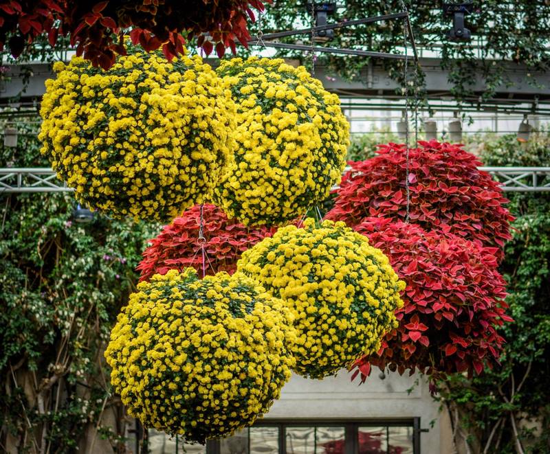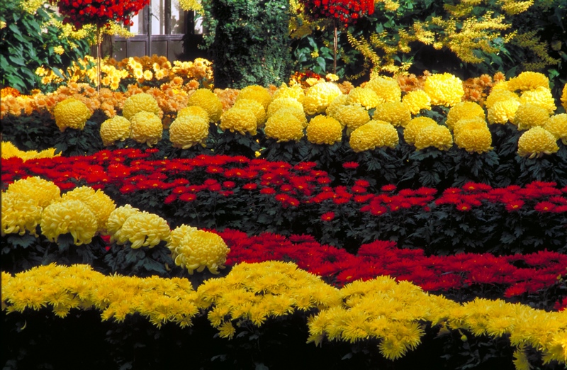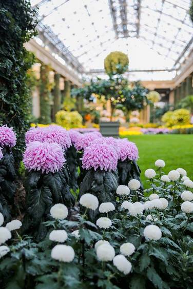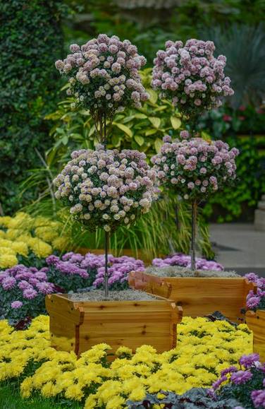 Los horticultores responsables de este trabajo tienen claro que, a los colores clásicos otoñales como el rojo, amarillo y naranja, hay que unir flores de otros crisantemos con flores de formas realmente atractivas y colores que no suelen ser tan habituales durante la temporada otoñal, como rosa, morado y blanco.