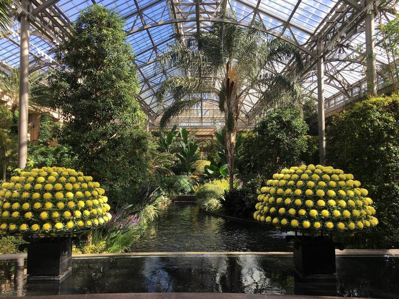 Para recordar todo lo que tiene que ver con este festival podéis consultar la información que he publicado en otras ocasiones aquí: Chrysanthemum Festival. En esos artículos encontraréis detalles sobre una de las exhibiciones estrella dentro de este evento, la denominada Thousand Bloom Mum, situada en el East Conservatory, que está inspirada en la técnica utilizada en Japón -ozukuri- en la que durante 18 meses de cultivo, y pinzado tras pinzado, se consigue que en un solo e inmenso crisantemo se formen más de mil flores. En esta ocasión, han sido 1.443 flores perfectas de crisantemo las que han integrado ese Thousand Bloom Mum.