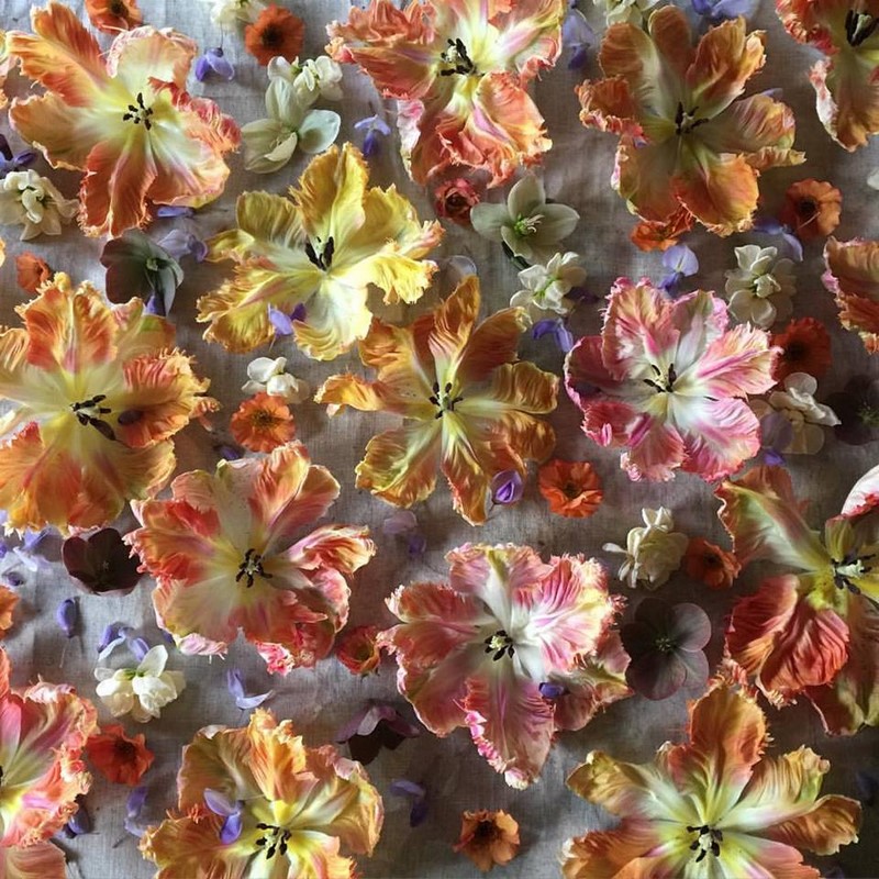 Una buena forma de seguir de cerca su trabajo es a través de su perfil de Instagram. En él podemos comprobar cómo destaca la flor que más va a utilizar en función de la especie que florece en cada estación. Sus fotos también nos permiten apreciar sus arreglos, lo que es realmente un placer. El uso de especies cultivadas, mimadas, exquisitas, que adquiere para sus trabajos, junto a flores y follaje recién cortado del jardín; tienen en sus manos una perfecta armonía, donde se funde equilibradamente delicadeza y frescor.