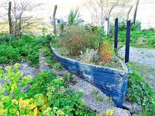 Un barco que ha llegado a su último puerto, anclado en el cesped y lleno de flores es lo más poético que uno se puede encontrar en el camino. Es como una sacudida al barco moribundo con un ‘desfibrilador floral’. Lo perdíamos, pero ha vuelto a la vida. Son barcos llenos de plantas y flores que inspiran amor y belleza.
