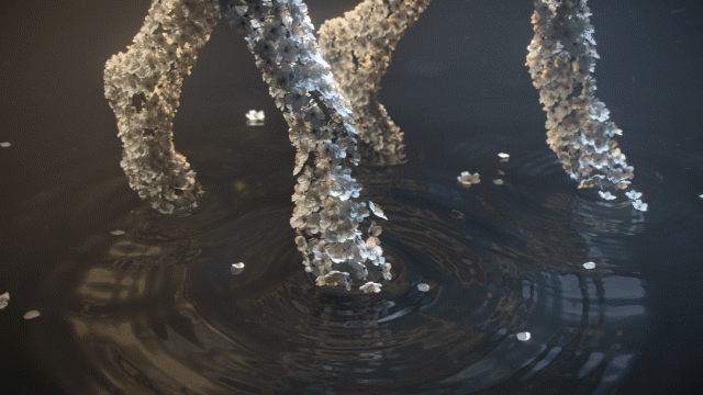 El uso combinado de técnicas de escaneado y software de modelado y animación en 3D (Houdini, Maya y Redshift) le permitieron capturar la imagen de esa flor, para después multiplicarla y modelarla hasta lograr formar las diferentes figuras femeninas. De este modo, casi por arte de magia, se fueron creando esas espectaculares esculturas que parecen reales.