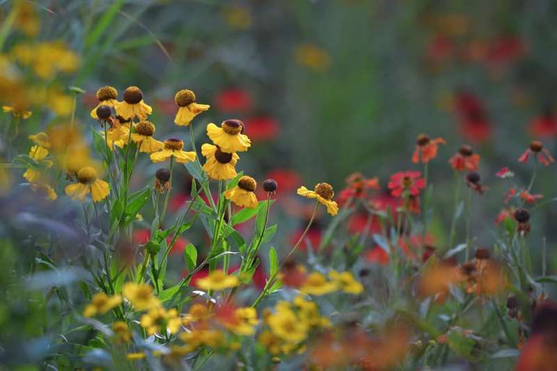 | Plantación con flores de Helenium en ‘Carmen’. Jardín de James Basson •• Flower Jam •• Foto: Михаил Щеглов |