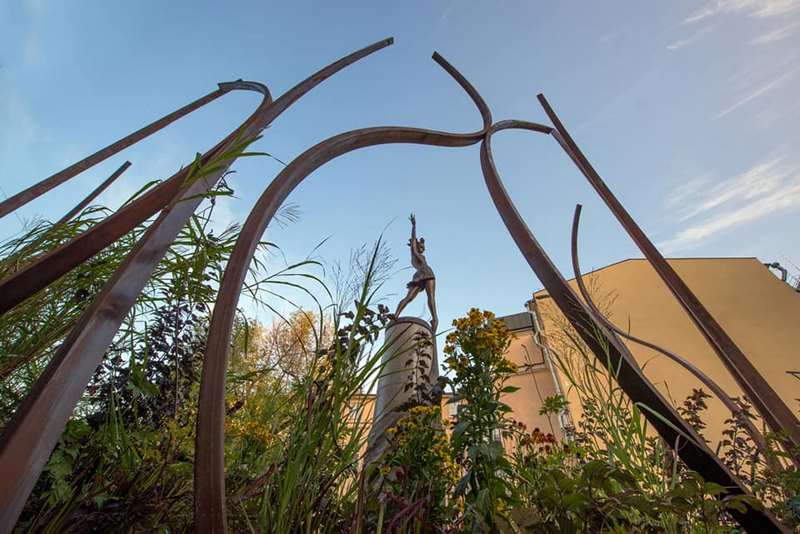 Y ¿Qué hizo James Basson? Un jardín que mueve los brazos como ella, con ligereza, pero marcando una personalidad arroladora. El nombre del jardín, Carmen. Al fin y al cabo, Plisetskaya también era conocida como “el alma rusa de Carmen”, ya que en su día había confesado que se identificaba con uno de sus personajes predilectos, la cigarrera Carmen, protagonista de la ópera de Bizet y que Plisetskaya interpretó por primera vez en 1967 en el Teatro Bolshoi de Moscú .