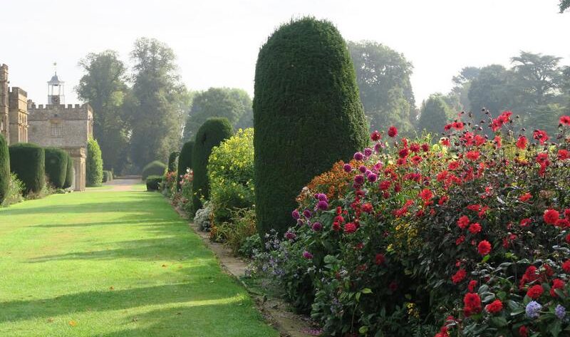 La lenta evolución de los jardines en esos nueve siglos de historia ha dejado alineaciones de topiaria y fronteras de herbáceas llenas de color; un arboreto; un jardín de pantano; lagos; un jardín amurallado y un huerto. El jardín destaca por su impresionante colección de plantas, como narcisos en primavera, azaleas y rododendros en verano, y un jardín de dalias en otoño.