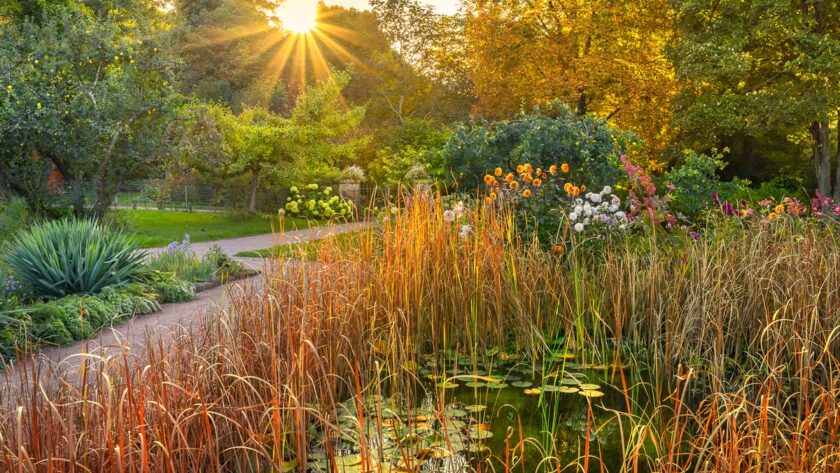 La fotógrafa alemana Claudia Gaupp, ya habitual en este concurso, ha vuelto a triunfar. En esta categoría acaba de obtener el tercer premio con una imagen obtenida mediante la combinación de dos exposiciones. En ella se muestra cómo el jardín de Rosenhöhe se despide del otoño bajo la luz dorada del ocaso reflejada en el estanque y realzada por juncos y dalias.