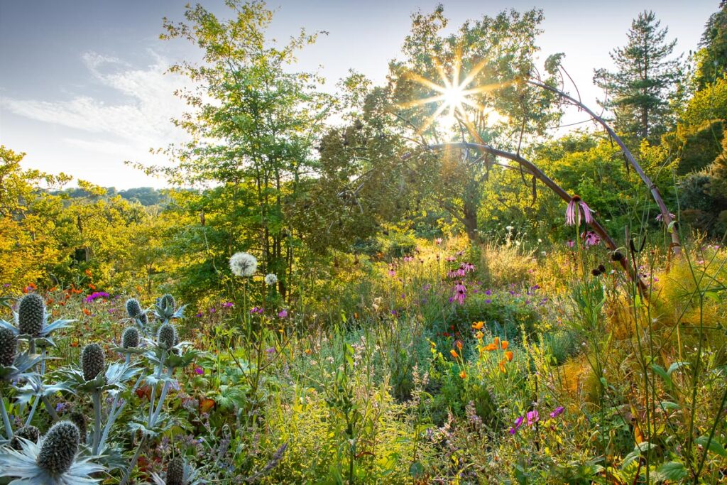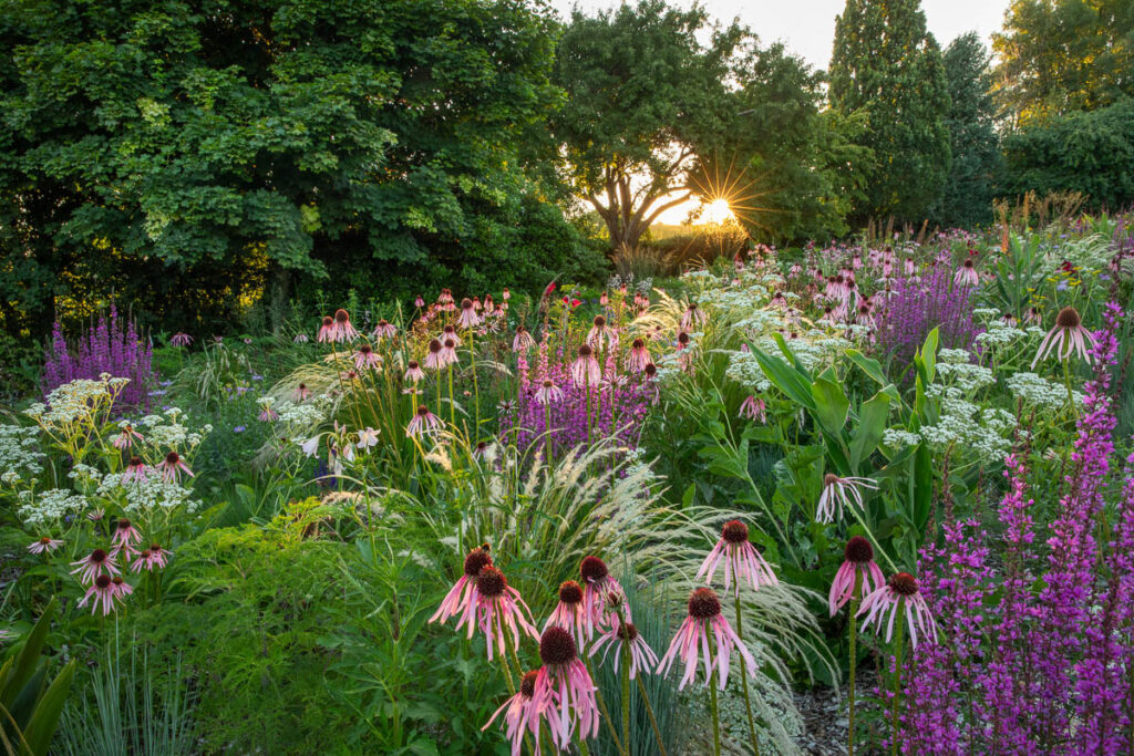 Especialista en fotografía de plantas y jardines, la brillante fotógrafa británica Marianne Marejus vuelve a sorprenderos con una bellísima foto realizada justo antes del atardecer en un jardín privado diseñado por James Hitchmough. En la imagen se aprecia la luz del sol filtrándose a través de la pradera de vivaces, y que iluminaba en aquel instante un macizo de flores de Echinacea pallida.
