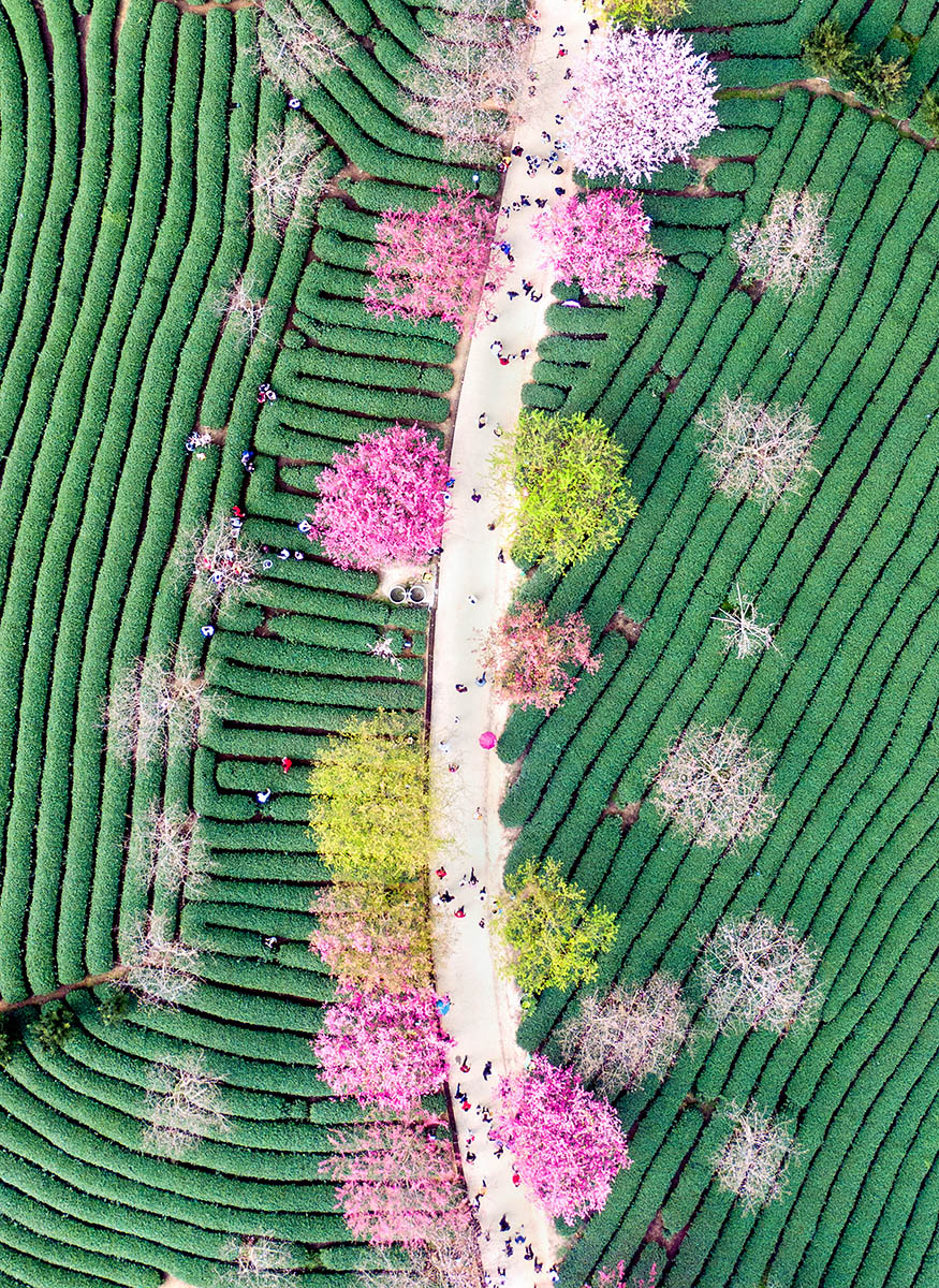 La luz del atardecer se recoge con maestría en un arboreto de Polonia. Y también hay una foto de un jardín en China que no es un jardín sino una plantación de té a vista de pájaro.